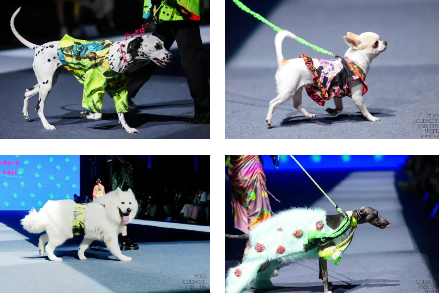 此外,成艺时尚设计学院联合AMEY品牌打造的宠物荧光服饰大秀,也成为本次时装周的独特亮点。